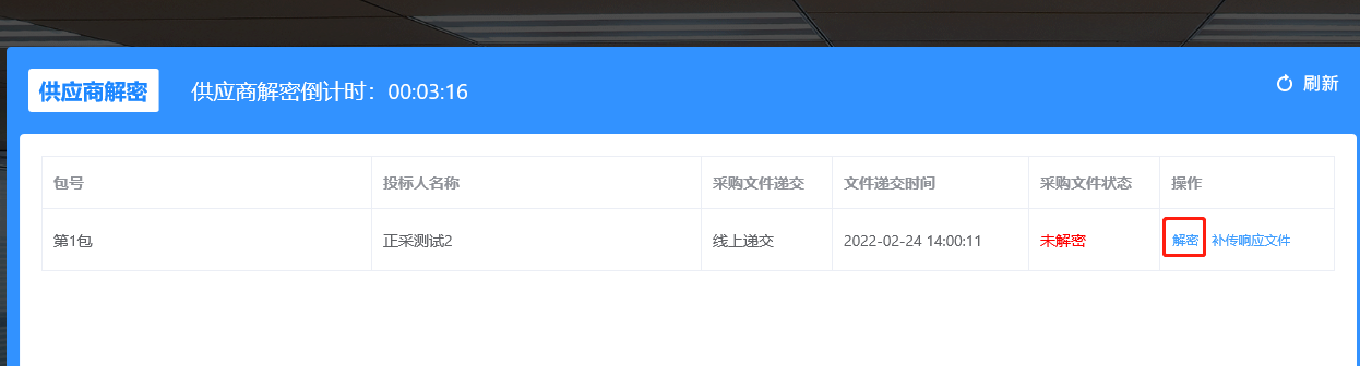 待所有供应商解密完成或者解密时间截止后,将公布供应商的解密情况。